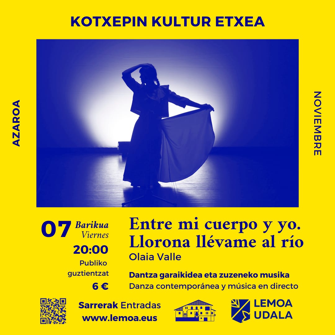 Entre mi cuerpo y yo. Llorona llévame al río es un diálogo entre la bailarina Olaia Valle y los músicos Zuhaitz Fernandez y Amaia Santamaría. Tiene como base un cuerpo que desea poner en valor a las mujeres que lo inspiran. Trata de llevar a cabo la exploración de lo rítmico para conectar con lo colectivo, a través de un cuerpo que se deja influenciar por el uso de instrumentos musicales que nos conectan directamente con el rito, la música tradicional y el folclore.