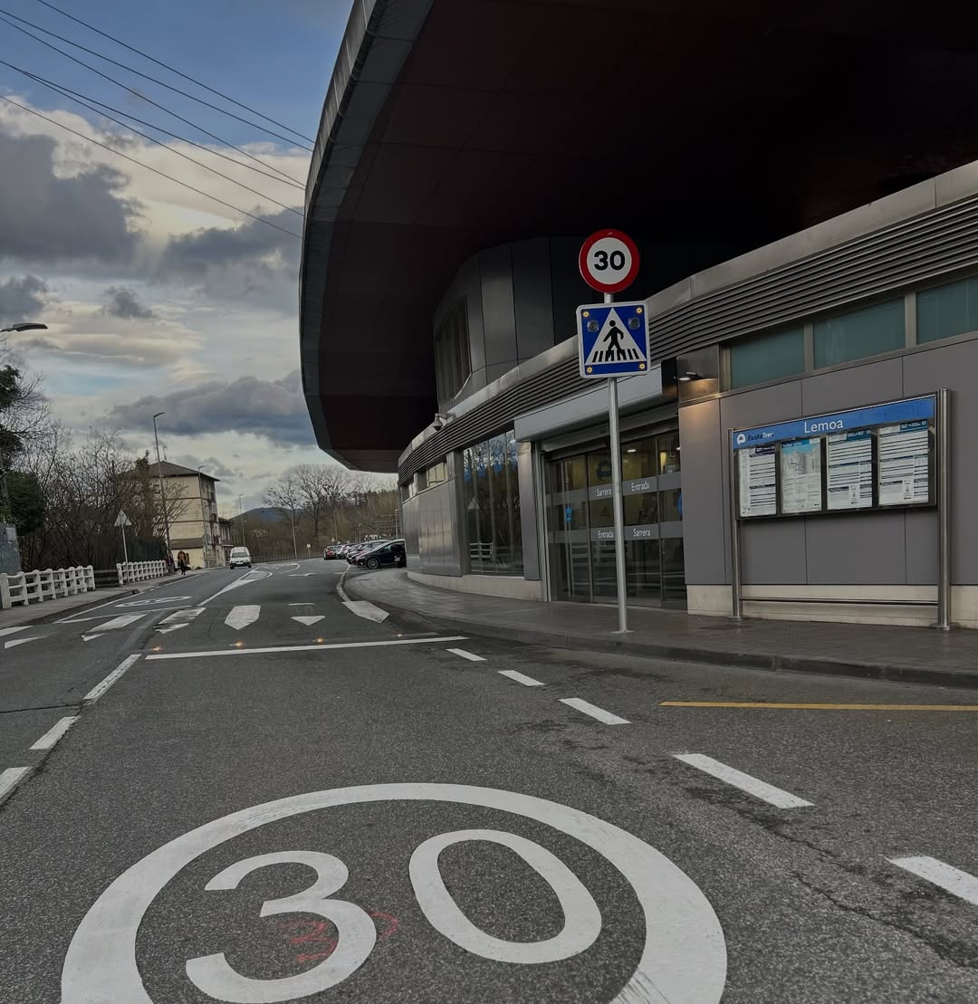 [Eus] Segurtasuna bermatzeko, batez ere tren erabiltzaileena, 30 km/h-ko abiadura-muga jarri da geltokiaren inguruan. Neurri honen helburua da oinezkoen eta ibilgailuen arteko bizikidetza hobetzea, istripuak izateko arriskua murriztea eta inguru horretan dabiltzan pertsona guztientzako ingurune seguruagoa sortzea.