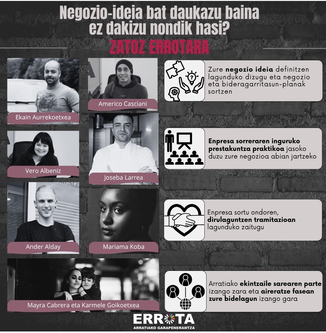 Informazio gehiago eskuratzeko edo lehen pausua emateko, interesdunek zuzenean jar daitezke harremanetan zerbitzuarekin Zulaibar auzoa 16an (Zeanuri), 688 854 543 telefono zenbakian edo info@errota.eus helbide elektronikoan.