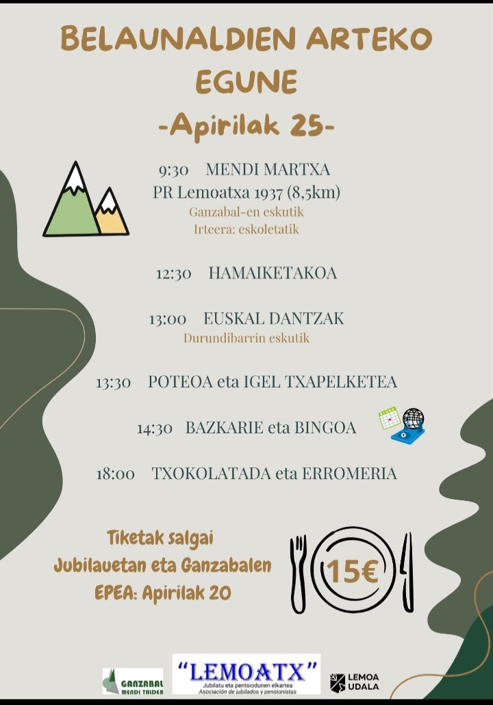 La jornada fue organizada por Lemoatx, la Asociación de Jubilados y Pensionistas y Ganzabal Mendi Taldea. Según las entidades organizadoras, el propósito fue reforzar los vínculos entre generaciones y contribuir a la cohesión comunitaria.