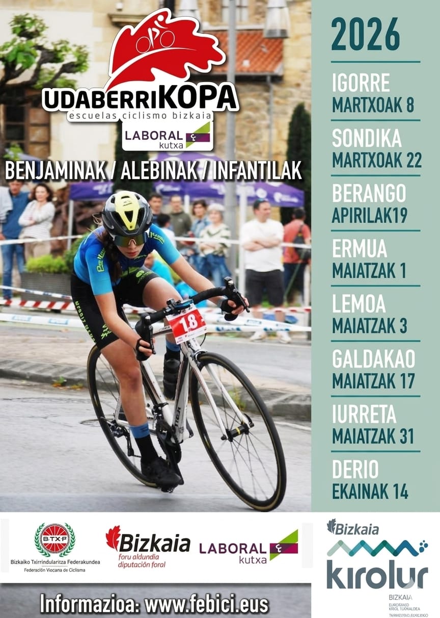 [es] El próximo 3 de mayo se celebrará una carrera ciclista en Lemoa, organizada por la Federación Bizkaina de Ciclismo, con el apoyo de los clubes y la colaboración de la Diputación Foral de Bizkaia. La jornada tendrá lugar en horario de mañana, de 09:00 a 13:10.