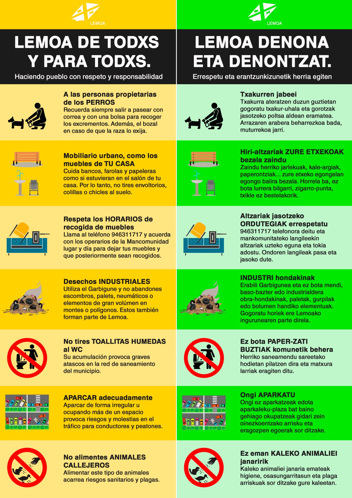 Bizikidetza kanpaina abiatu zuen otsailan Lemoako Udalak, herria errespetuz eta erantzukizunez eraikitzen jarraitzeko helburuz, guztien artean eta guztientzako. Izan ere, udala kontziente da Lemoa oso leku polita dela bizitzeko, parte hartzeko, hezteko eta hazteko, baina herritar gehienek beraien ardurak nahiko ondo barneratuta badituzte ere, gutxiengo batek ez du errespetuz jokatzen gai batzuetan, eta horrek bizikidetza […]