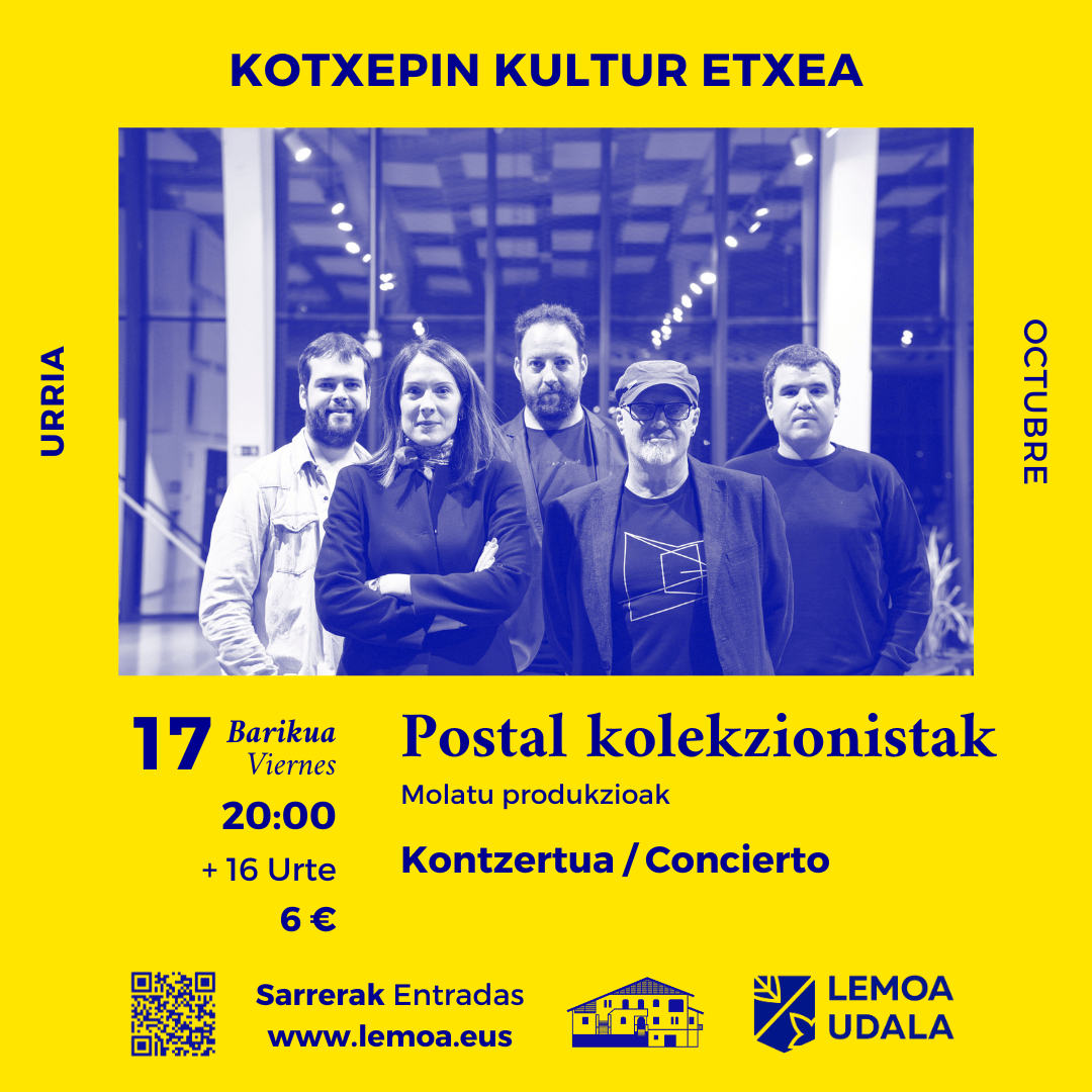 [eus] Urriaren 24an, barikuan, «Zapata gorriak» ipuin kontaketa izango da Kotxepin Kultur Etxean, 18:30ean. Judith Poves eta Iker Etxarri izango dira saio honen protagonistak, 4 eta 8 urte bitarteko haurrei zuzendutako kontakizun zirraragarri eta magiko batean. Ipuinak irudimena, emozioak eta parte-hartzea uztartzen ditu, haurrek ipuinaren barruan bidaiatu eta amesteko aukera izan dezaten. Ipuinen eta antzerkiaren […]